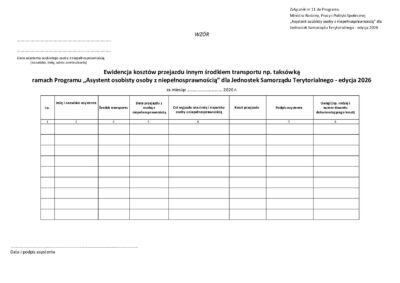 Załącznik 11 – wzór ewidencji kosztów przejazdu innym środkiem transportu w ramach Programu