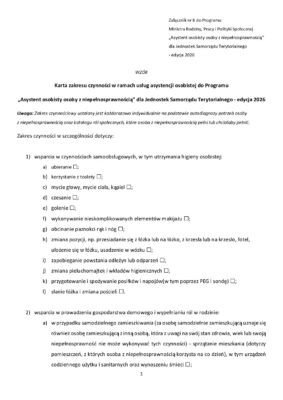 Załącznik 8 – Wzór karty zakresu czynności w ramach usługi asystencji osobistej do Programu